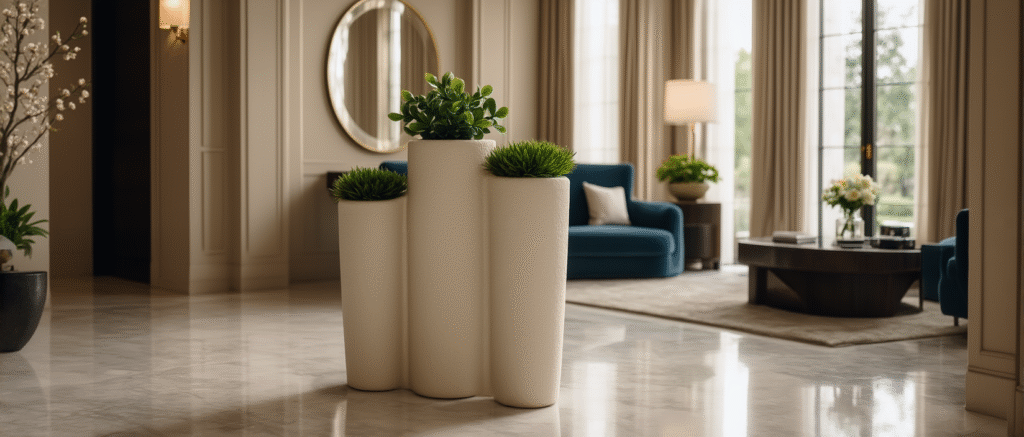 The idea is simple: a plant is only as stunning as the planter it sits in. That’s why our designs focus heavily on texture play, silhouette refinement, and material richness. Whether it’s a sleek cylinder planter for a modern entryway or a sculptural artistic pot for a statement corner, each planter stands as a piece of functional art.